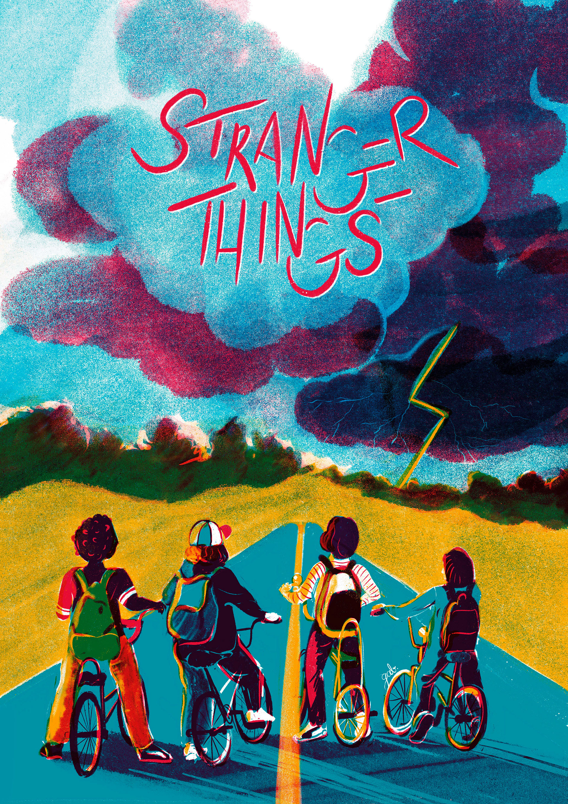 I was aiming for the 80's vibe of the show and thus tried creating a riso-like aesthetics. Hope you like it!